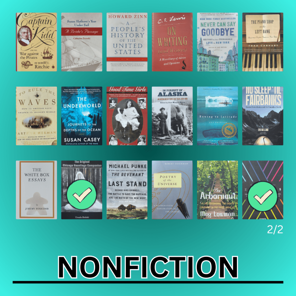 Out of the 224 books I own, I’ve read six (one title is missing from my slides), bringing my unread books down from 140 to 134. That’s a decrease from 62.5% unread to 59.8% unread. I’m on my way to my 25%!